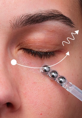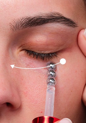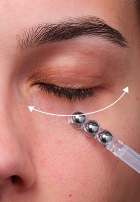Χρησιμοποιώντας το απλικατέρ: (1) Κάντε μασάζ με κυκλικές κινήσεις. (2) Λειάνετε την επιδερμίδα, προς την αντίθετη φορά. (3) Κάντε πιέσεις στα 10 σημεία-κλειδί γύρω από τα μάτια.